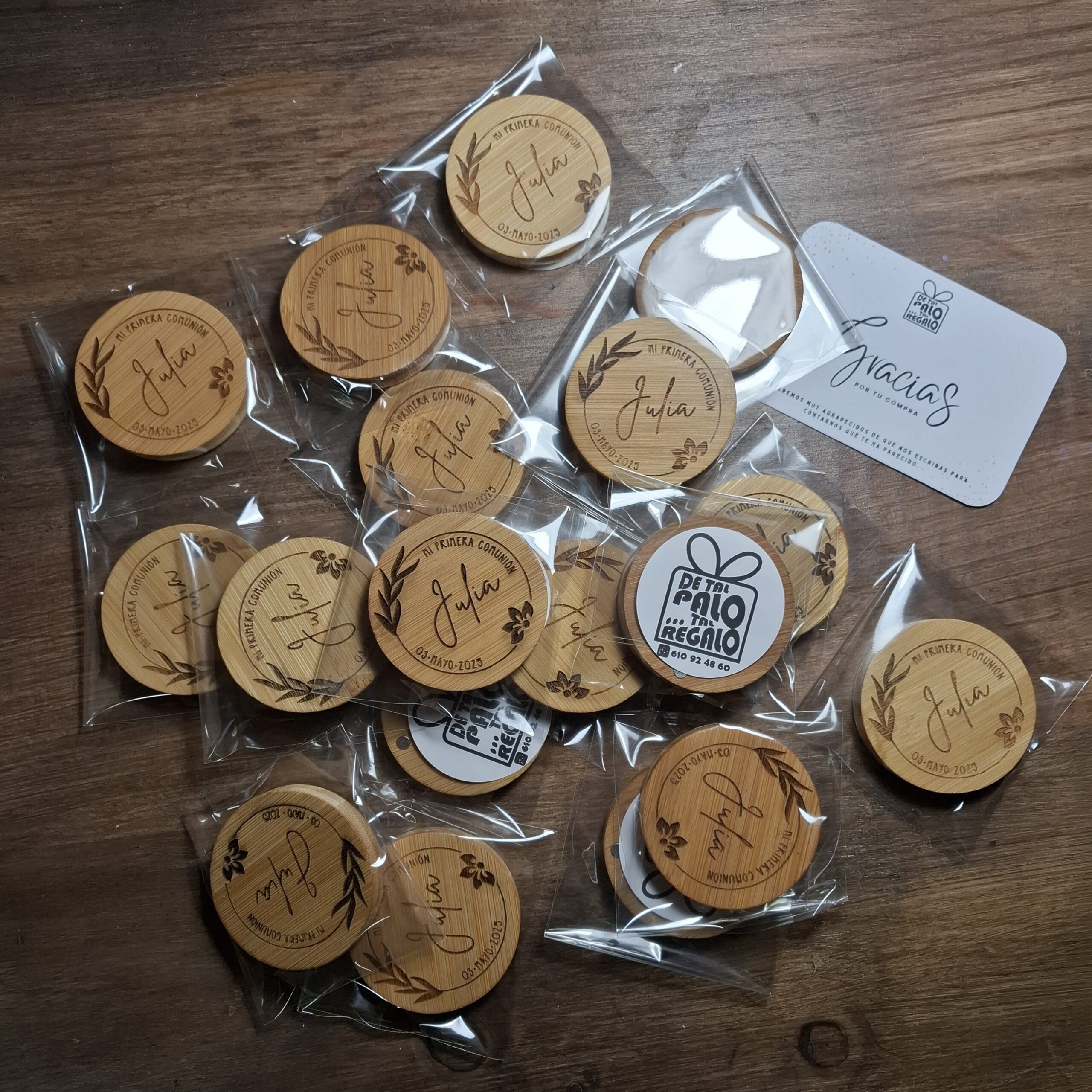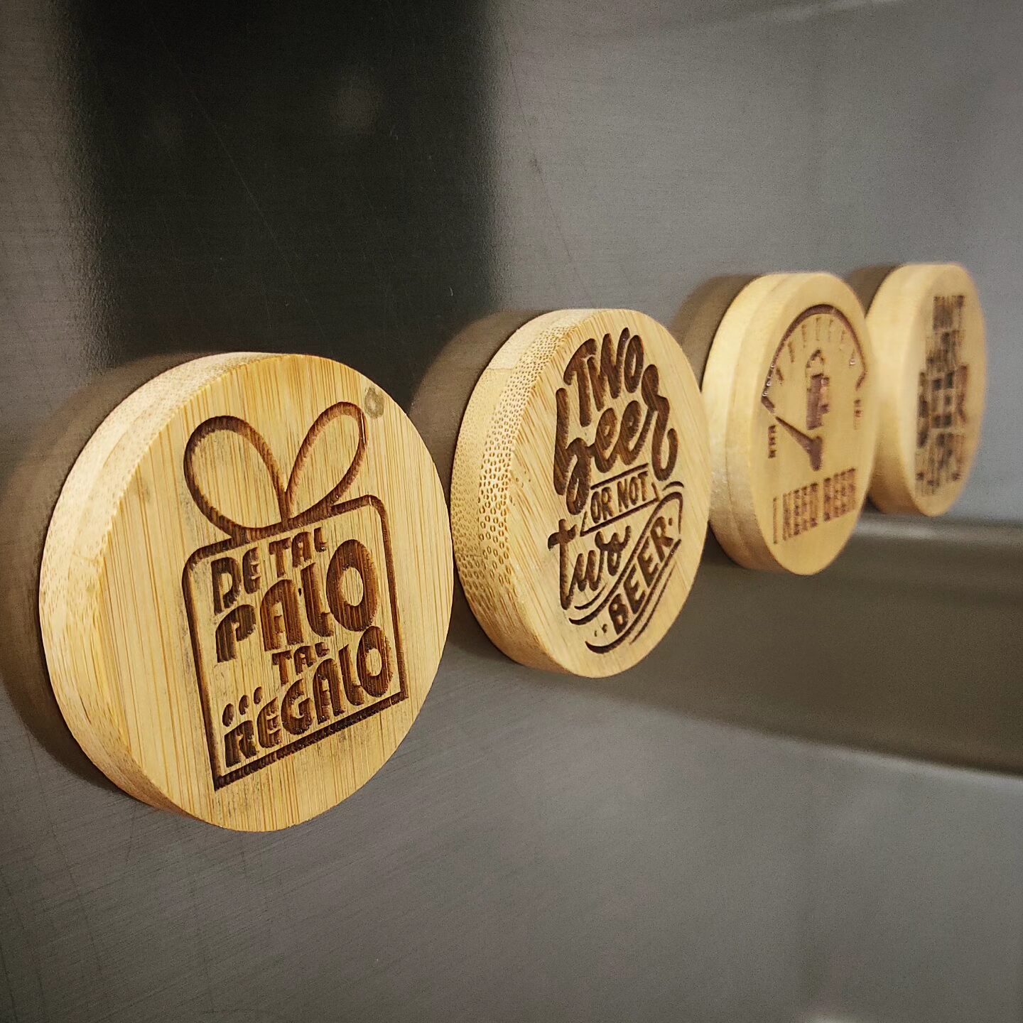 La madera aporta calidez y elegancia. Trabajamos con grabado preciso para un acabado nítido. Ideas top: